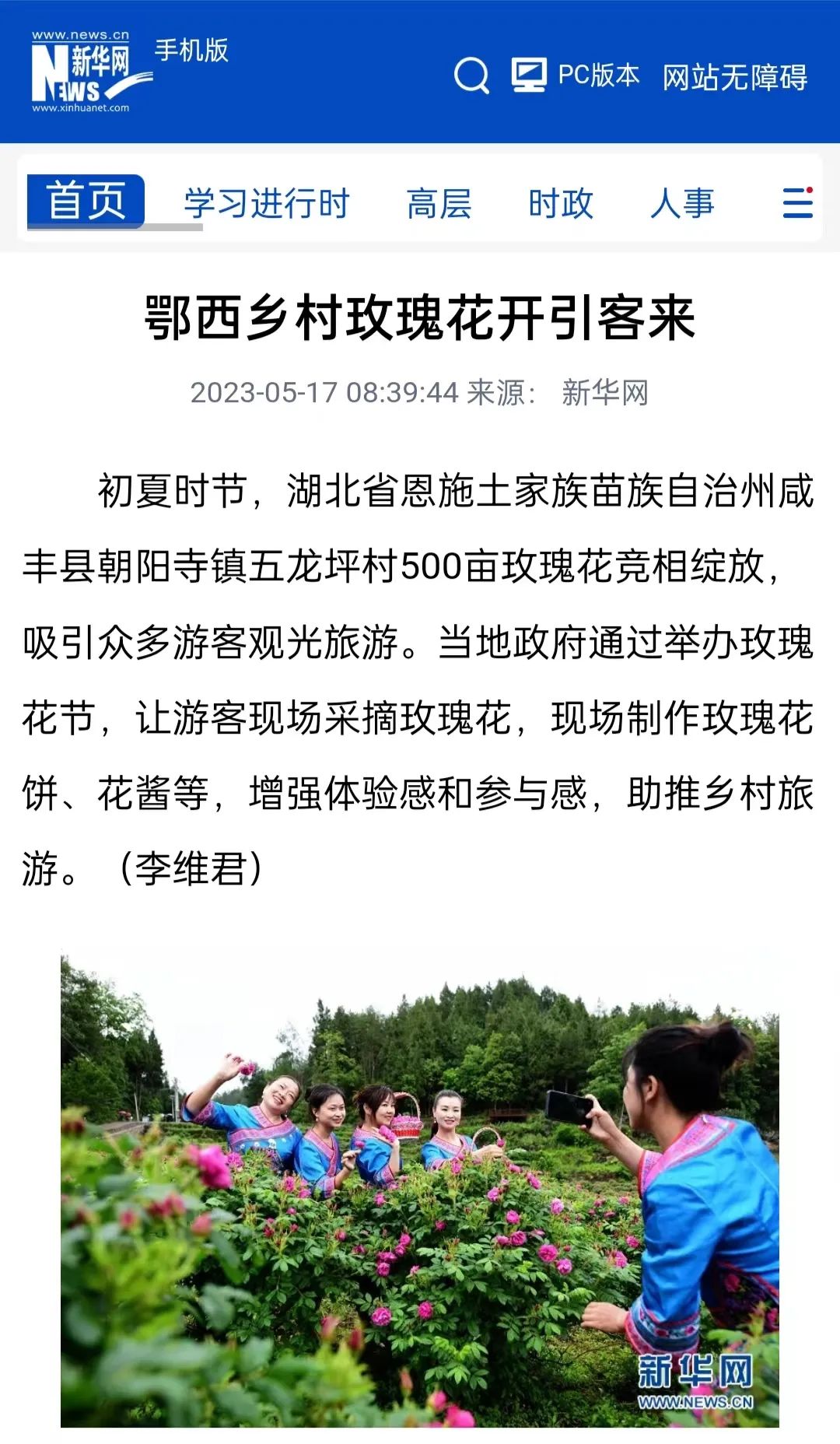 規(guī)劃以玫瑰花種植為五龍坪村產(chǎn)業(yè)發(fā)展的主攻方向。5月7日,在咸豐縣各級(jí)領(lǐng)導(dǎo)、單位的大力支持和村中以“產(chǎn)業(yè)帶頭人”為代表的村民們的積極響應(yīng)下,村第二屆玫瑰花節(jié)盛大開(kāi)幕,現(xiàn)場(chǎng)人頭攢動(dòng)。從村民臉上的笑容可以看出,產(chǎn)業(yè)發(fā)展充分提振了信心,實(shí)現(xiàn)產(chǎn)業(yè)振興的良性循環(huán),為推進(jìn)五龍坪村的整體振興貢獻(xiàn)了澎湃力量。同時(shí),玫瑰花節(jié)盛況受到新華網(wǎng)關(guān)注報(bào)道。
