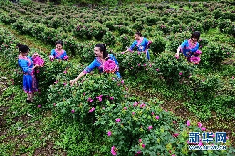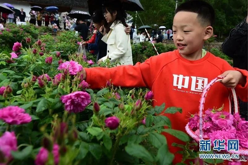 游客在五龍坪村玫瑰花種植基地體驗(yàn)玫瑰花采摘樂(lè)趣